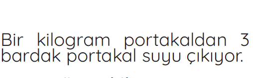 10-) Buna göre 8 kilogram portakaldan kaç bardak portakal suyu çıkar?