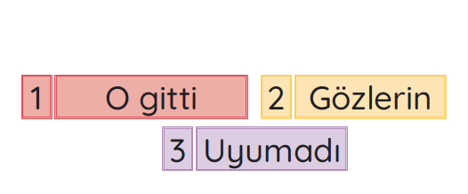 5-) Yukarıda sözcüklerden anlamlı ve kurallı bir cümle oluşturunuz?