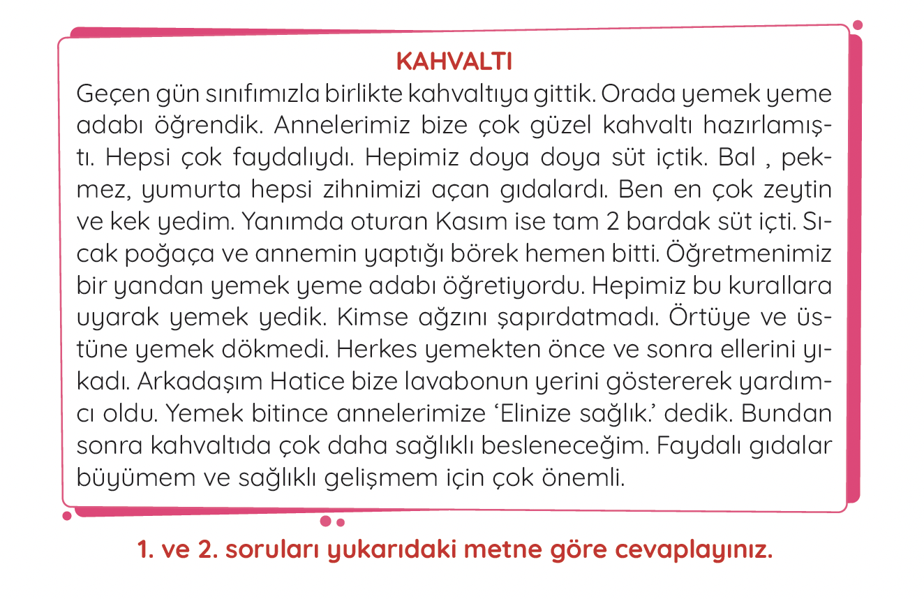 1. Sınıf Türkçe 21. Hafta Konu Tarama Testi