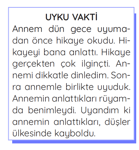 1. Sınıf Türkçe 21. Hafta Konu Tarama Testi