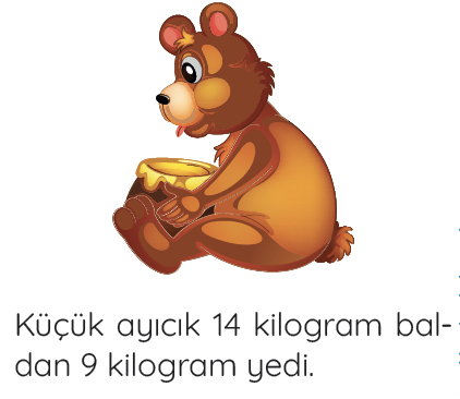 3-) Annem 14 dilim elma kesti. Kardeşim 7 tanesini yedi. Geriye kaç dilim elma kaldı?