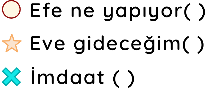 10-) Yukarıdaki sembollerle verilenlerden hangisinin sonuna ünlem işareti konmalıdır?