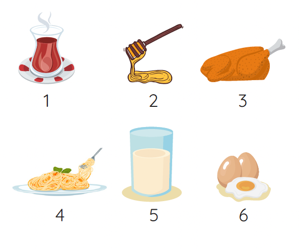 1-) Mehmet kahvaltıda yukarıdakilerden hangilerini seçerse sağlıklı beslenmiş olur?