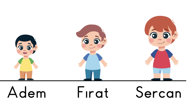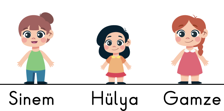 1-) Görseldeki çocuklardan boyu en uzun olan hangisidir?