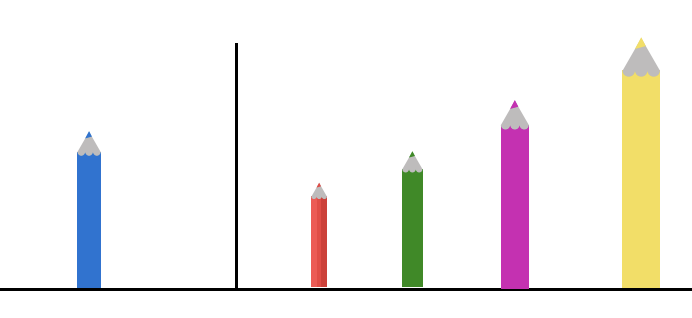 3-) Mavi kalem uzunluğuna göre hangi kalemlerin arasında yer alır?