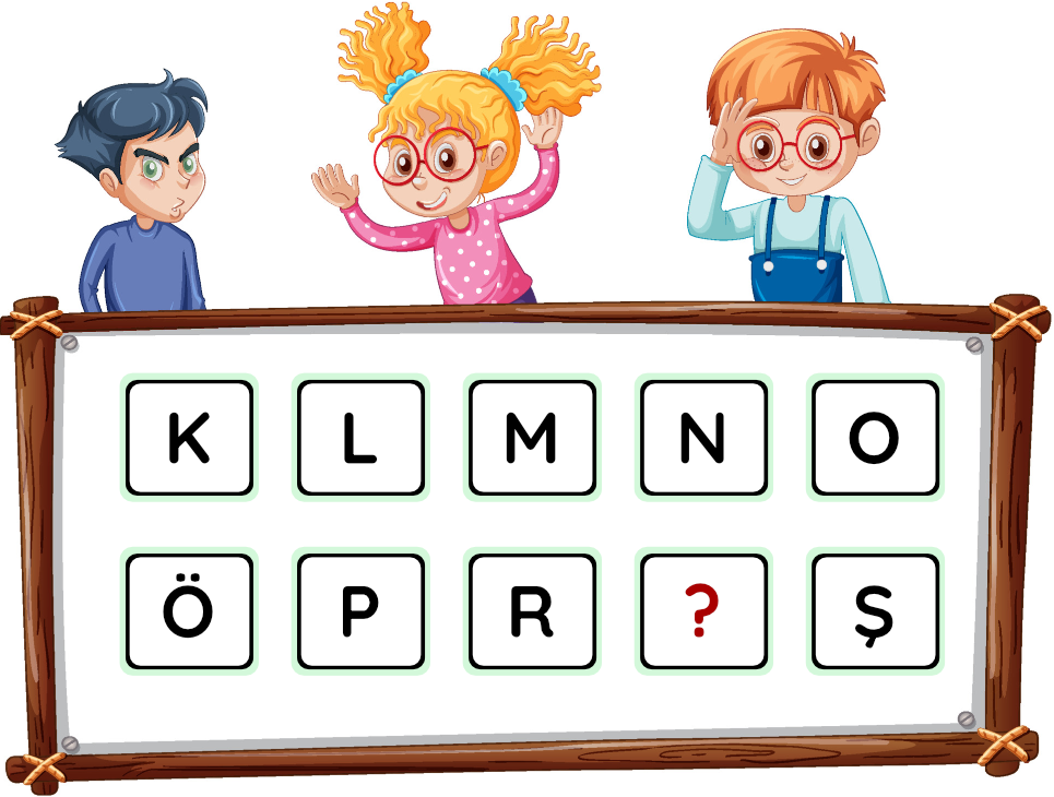 1-) Alfabetik sıraya göre dizilmiş yukarıdaki harflerde sıradaki harf hangisidir?