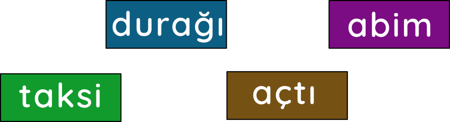 7-) Yukarıda sözcüklerden anlamlı ve kurallı bir cümle oluşturunuz?