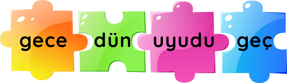 7-) Yukarıda sözcüklerden anlamlı ve kurallı bir cümle oluşturunuz?