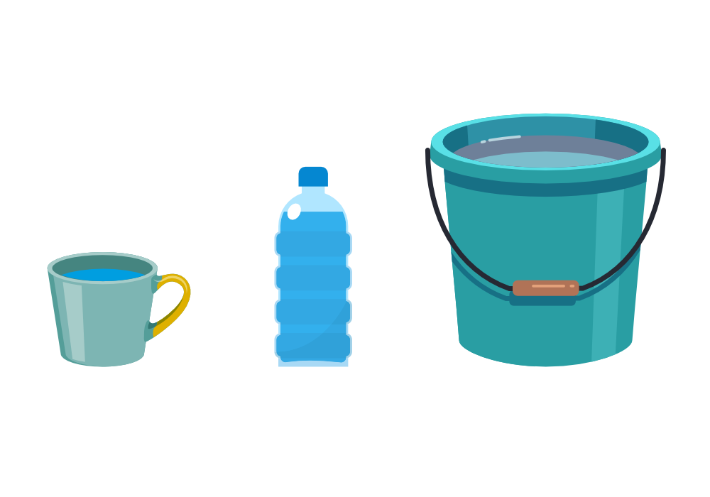 15-) Yukarıdaki kaplara birer fincan su koyulursa hangi kaptaki su seviyesi en az olur?