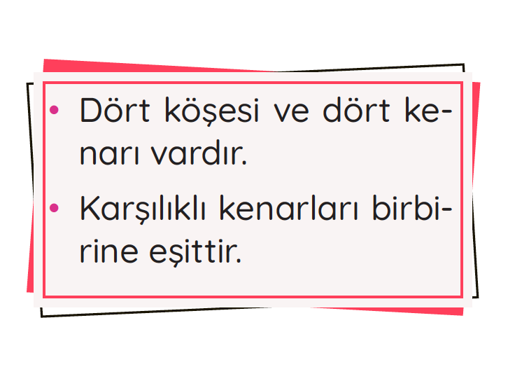 Dikdörtgenin bütün kenarları birbirine eşittir.