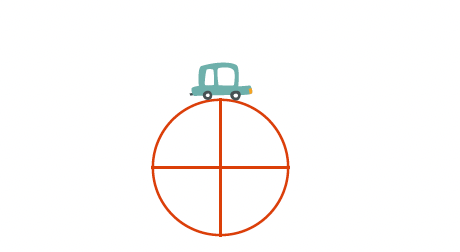 28-) Görseldeki arabayı saat yönünün tersine iki çeyrek dönüş yapacak şekilde sürüklediğimizde arabanın yeni konumu nasıl olur?