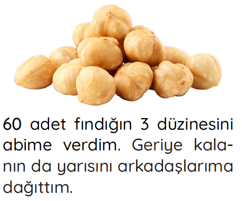 7-) Her birinde 8 silgi olan 6 kutum vardı. 3 düzinesini arkadaşlarıma dağıttım. Geriye kaç silgim kaldı?