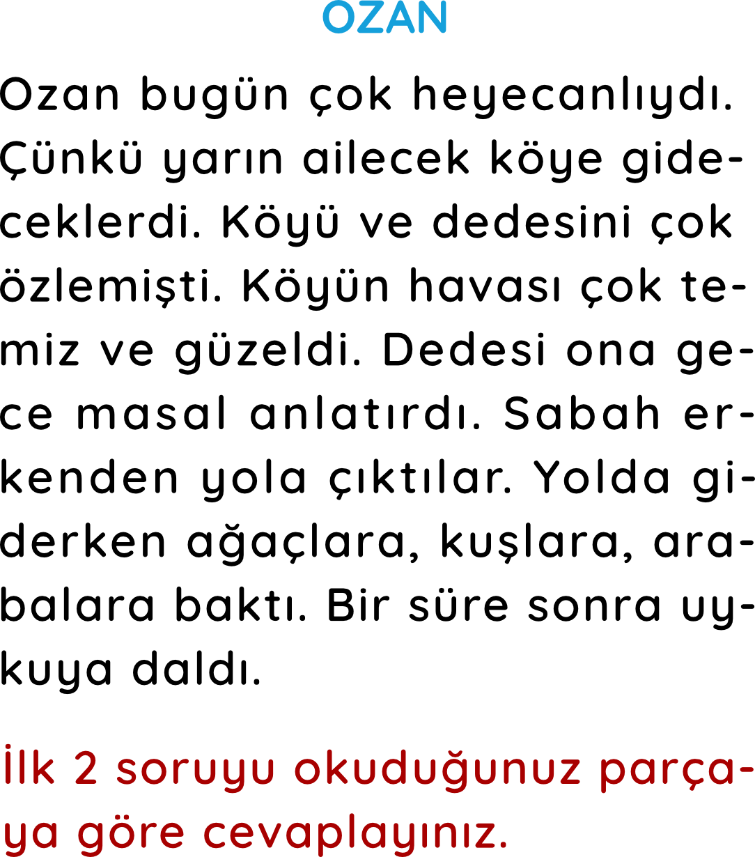 2. Sınıf Türkçe Genel Deneme Sınavı-3