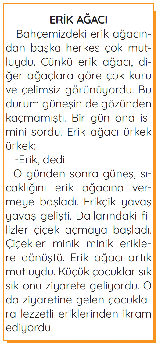 1-) Okuduğumuz metne göre erik ağacına kim yardım etmiş?