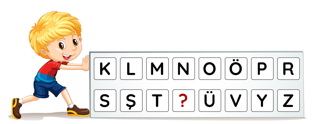 1-) Alfabetik sıraya göre dizilmiş yukarıdaki harflerde sıradaki harf hangisidir?