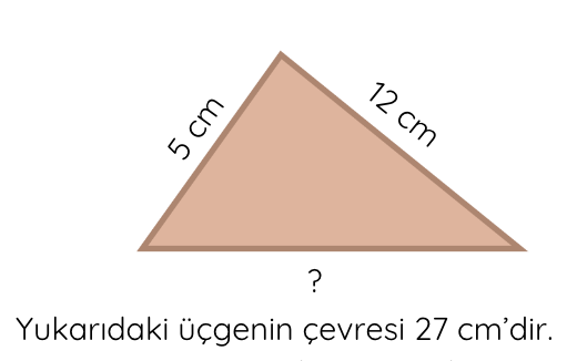 4-) Kenarları eşit uzunlukta olan bir üçgenin çevre uzunluğu 105 cm’dir. Bu üçgenin bir kenarının uzunluğu kaç santimetredir?