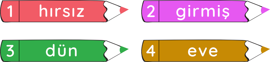1-) Yukarıdaki sözcüklerle kurallı bir cümle yazıldığında nasıl bir sıralama oluşur?
