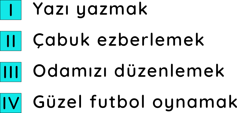 5-) Yukarıdaki sembollerle verilen eylemlerden hangisinin zamanı diğerlerinden farklıdır?