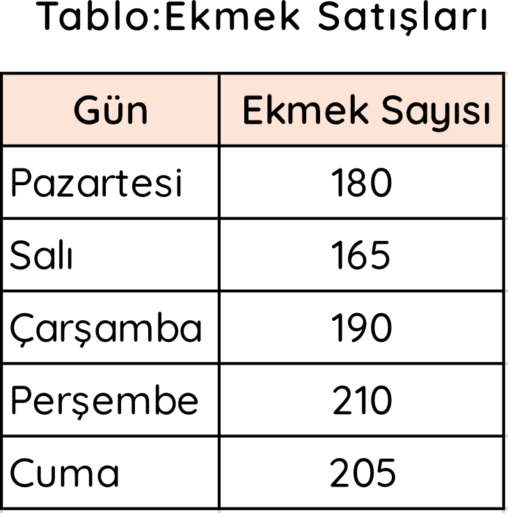 15-) Yukarıdaki tabloya göre Pazartesi ve Cuma günü toplam kaç ekmek satılmıştır?