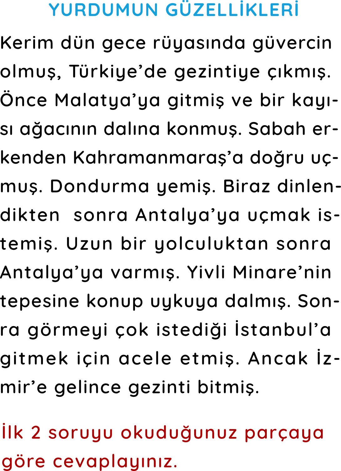 3. Sınıf Türkçe Genel Deneme Sınavı-3
