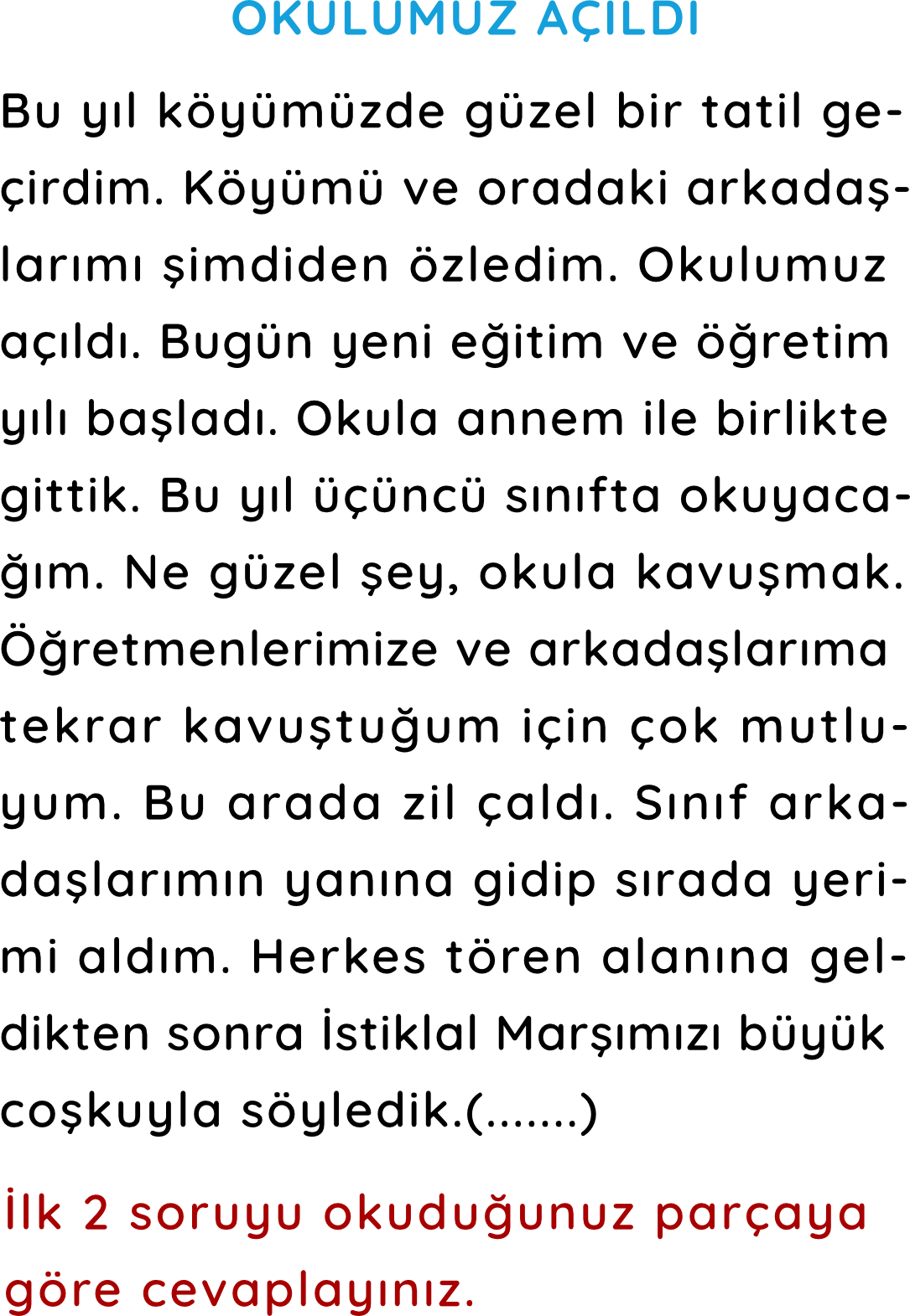 3. Sınıf Türkçe Genel Deneme Sınavı-3