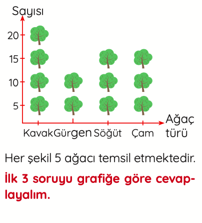3-) Kavak ve gürgen ağaçlarının toplamı kaçtır?