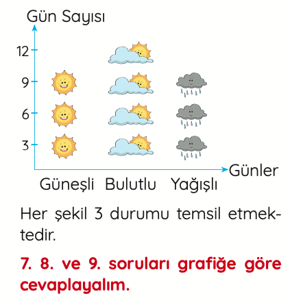 9-) Grafiğe göre bulutlu gün sayısı yağmurlu gün sayısından kaç fazladır?