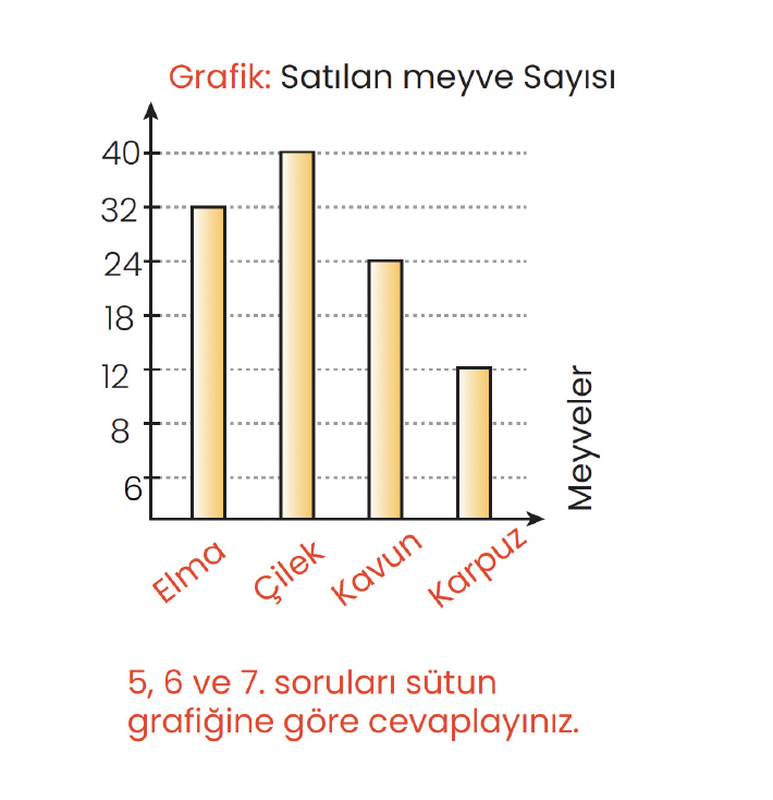 6-) Elma kavundan kaç adet fazla satılmıştır?