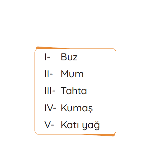 15-) Yukarıdakilerden hangileri ısı etkisiyle erir?