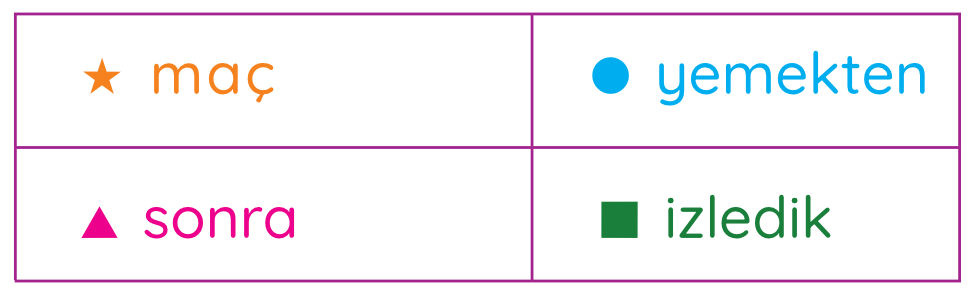 2-) Yukarıdaki sözcüklerle kurallı bir cümle yazıldığında nasıl bir sıralama oluşur?
