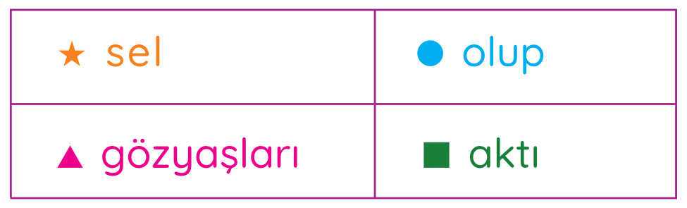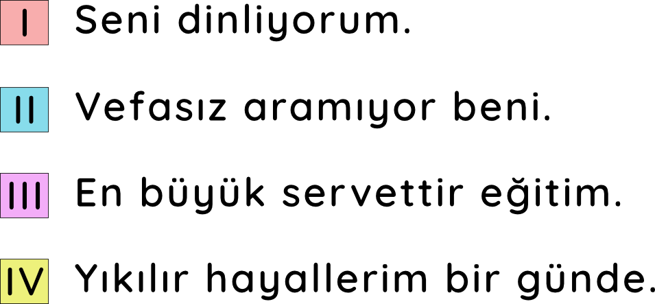 7-) Yukarıdaki sözcüklerden anlamlı bir cümle oluşturulursa ikinci sırada hangi sözcük olur?