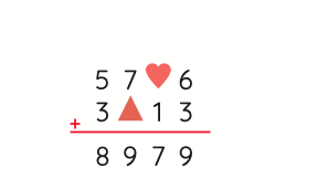 3-) Yukarıdaki toplama işlemine göre ♥ ve 🔺 sembollerinin yerine yazılabilecek rakamların çarpımı kaçtır?