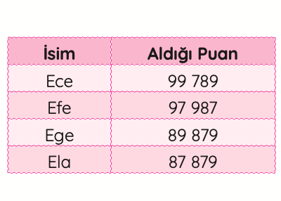 4. sınıf doğal sayıları karşılaştırma ve sıralama